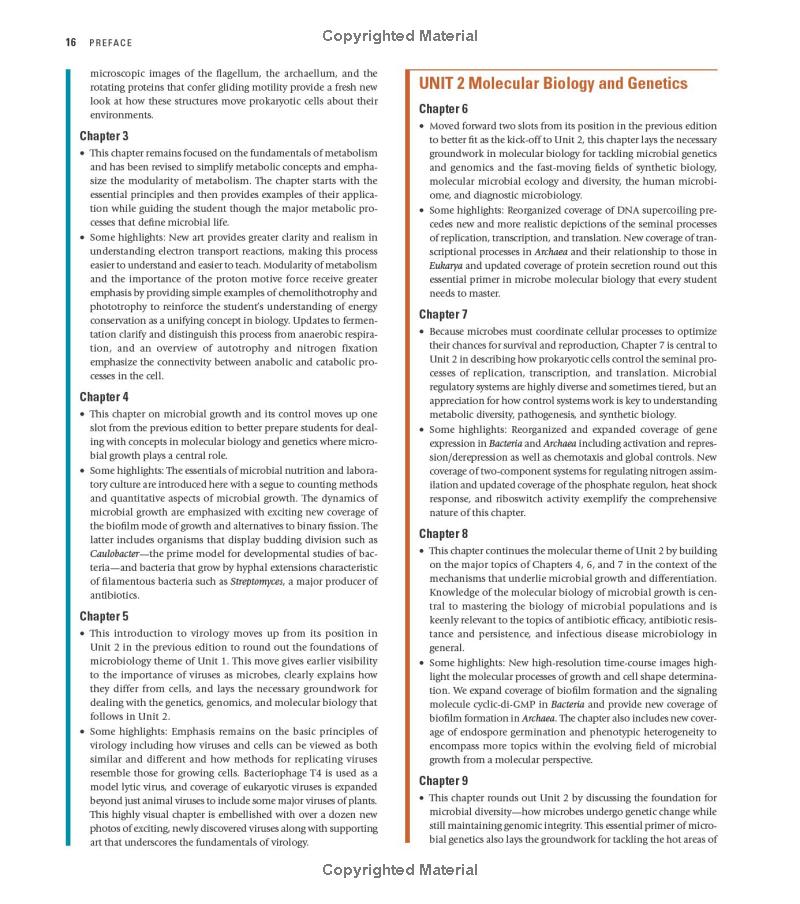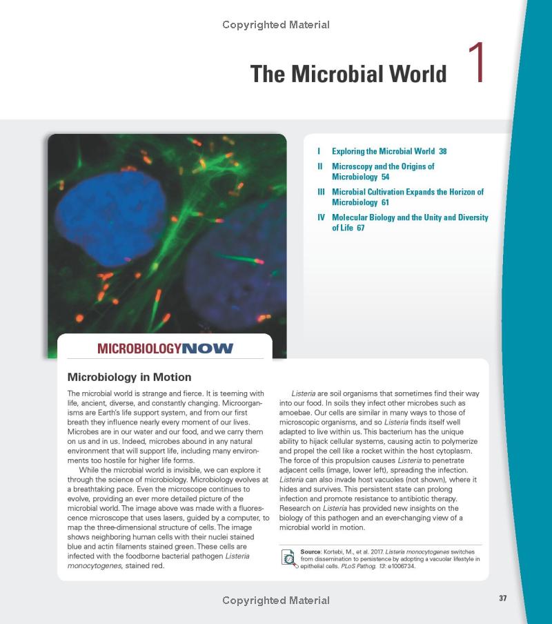 The 16th Edition expands the extraordinary artprogram to ensure students experience microbiology as a visual science whileproviding an overview of the microbial world with basic principles thatstudents all need to master. Each chapter’s theme focuses on a recent discoverythat connects students with the most current science and engages them withexciting, real-world topics.