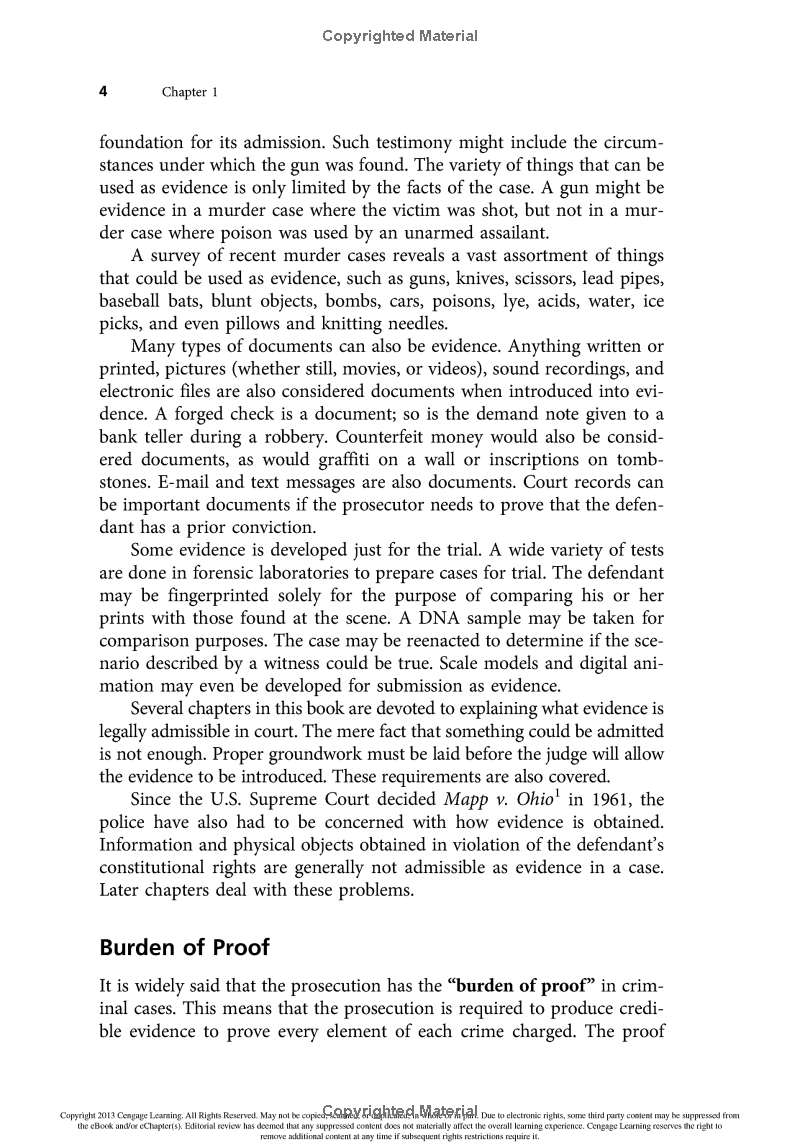 With an emphasis on real-world applications, CRIMINAL EVIDENCE, Eighth Edition, provides readers with comprehensive, up-to-date coverage of common evidentiary topics in a brief, affordable format. This book thoroughly explores constitutional issues essential to the collection and seizure of admissible evidence and legal interrogation, carefully outlining concepts and processes applicable to every state and pointing out where great interstate variation exists or specific state codes may have a strong impact. Current trends and topics discussed include terrorism and homeland security, scientific evidence, Federal Rules of Evidence, hearsay, and the appellate system.