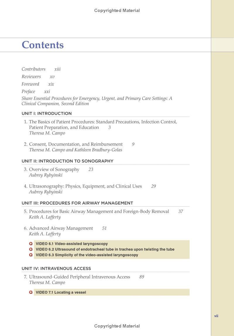 Each procedure includes background considerations, indications for performing the procedure, how to perform it safely and correctly, contraindications, required documentation, complications, post-procedure considerations, and patient education points. Original photos, actual sonographic footage, line drawings, and tables reinforce the written directions. “Pearls” and extensive references at the end of each chapter further enhance the book’s utility.