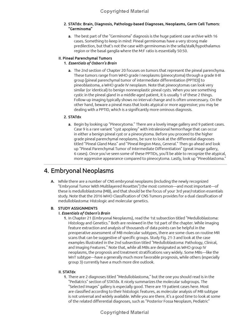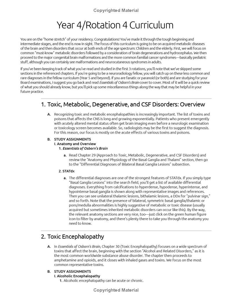 - Includes a brief section for each of 4 resident years, which lists directed readings in the book as well as optional correlated content in STATdx and RADPrimer for each rotation
