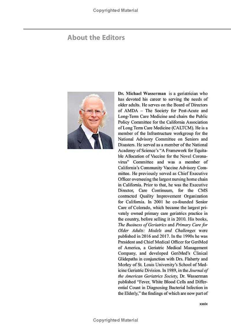 The proposed handbookis designed to present a comprehensive and state-of the-art update that incorporates existing literature with clinical experience. Basic science and the physiology of aging create a background, but are not the main focus. This is because every chapter has been written through the lens of “person centered care.” This book is about focusing on what matters to the person, and how that is not always about pathology and physiology. The reader generally will not find simple solutions to symptoms, diseases and syndromes. In fact, the key to caring for geriatric patients is the ability to think both critically and divergently at the same time. Geriatrics encompasses multiple disciplines and spans all of the subspecialties. It requires knowledge of working within an interdisciplinary team. It requires an appreciation of how quality of life varies with each individual and creates treatment and care plans that also vary. And most of all, it requires a firm commitment to first learning who the person is so that all of the necessary data can be analyzed and integrated into a true person centered plan of care. This book aims to serve as an unparalleled resource for meeting these challenges. Updated and revised from the previous edition, this text features over 40 new peer-reviewed chapters, new references, and a wide array of useful new tools that are updated on a regular basis by interdisciplinary and interprofessional experts in geriatric medicine.