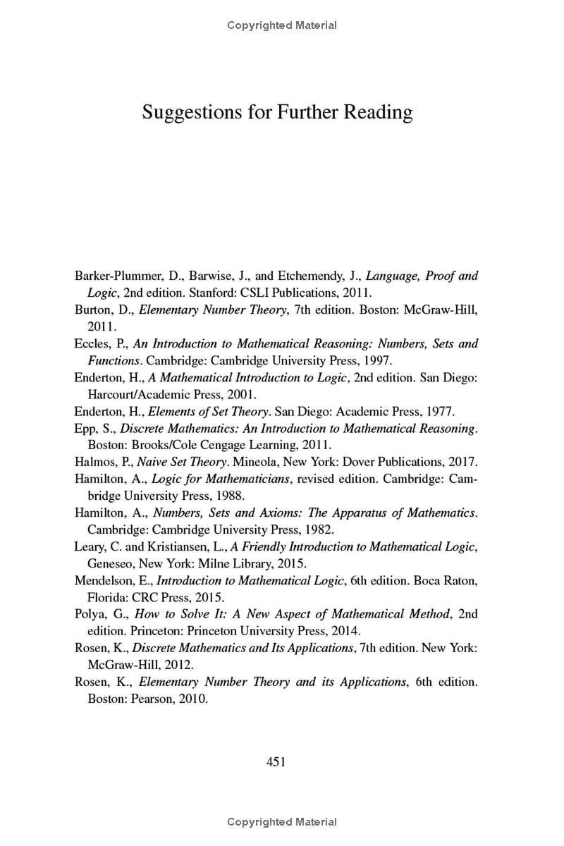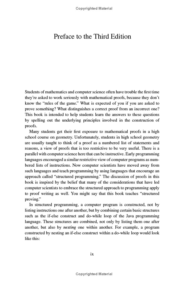 Proofs play a central role in advanced mathematics and theoretical computer science, yet many students struggle the first time they take a course in which proofs play a significant role. This bestselling text’s third edition helps students transition from solving problems to proving theorems by teaching them the techniques needed to read and write proofs. Featuring over 150 new exercises and a new chapter on number theory, this new edition introduces students to the world of advanced mathematics through the mastery of proofs. The book begins with the basic concepts of logic and set theory to familiarize students with the language of mathematics and how it is interpreted. These concepts are used as the basis for an analysis of techniques that can be used to build up complex proofs step by step, using detailed ‘scratch work’ sections to expose the machinery of proofs about numbers, sets, relations, and functions. Assuming no background beyond standard high school mathematics, this book will be useful to anyone interested in logic and proofs: computer scientists, philosophers, linguists, and, of course, mathematicians.