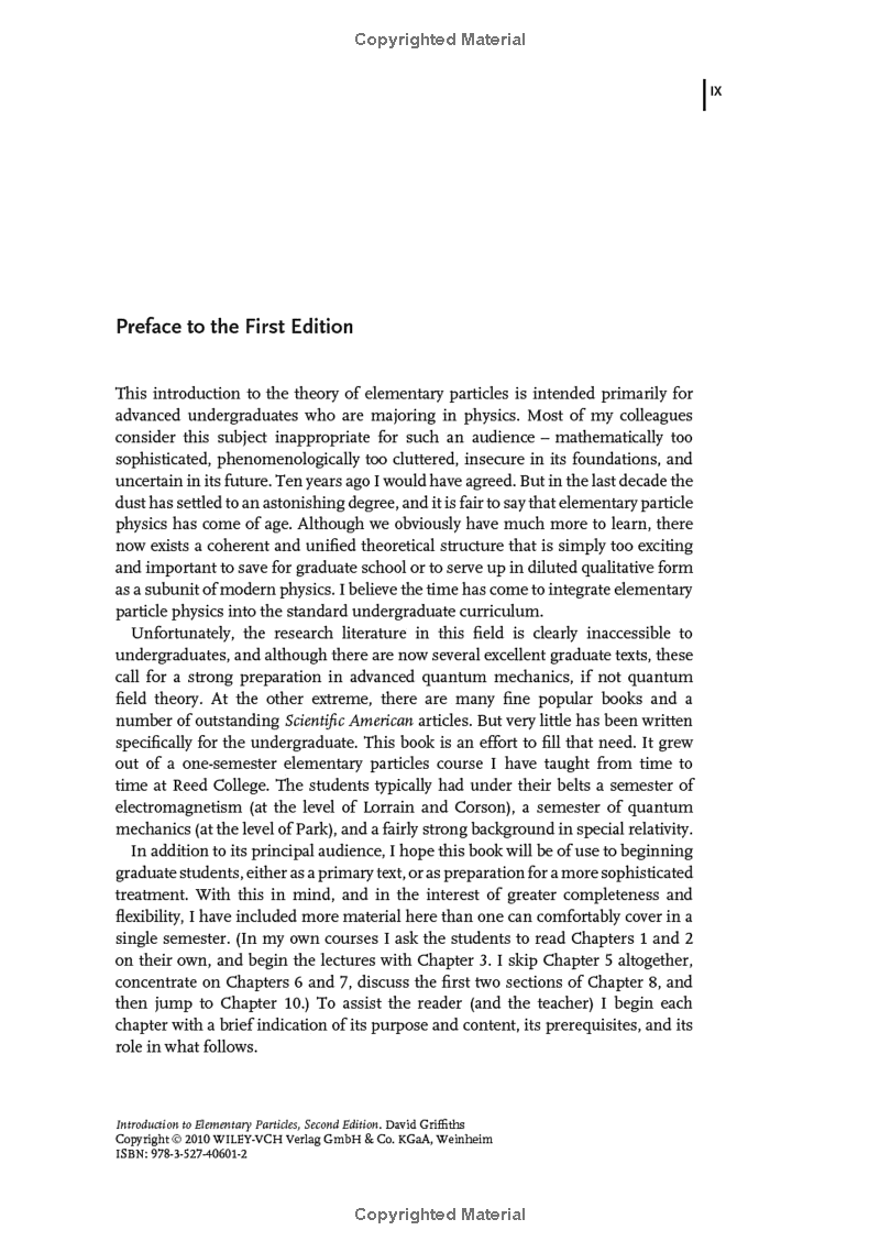 In the second, revised edition of a well-established textbook, the author strikes a balance between quantitative rigor and intuitive understanding, using a lively, informal style. The first chapter provides a detailed historical introduction to the subject, while subsequent chapters offer a quantitative presentation of the Standard Model. A simplified introduction to the Feynman rules, based on a “toy” model, helps readers learn the calculational techniques without the complications of spin. It is followed by accessible treatments of quantum electrodynamics, the strong and weak interactions, and gauge theories. New chapters address neutrino oscillations and prospects for physics beyond the Standard Model. The book contains a number of worked examples and many end-of-chapter problems. A complete solution manual is available for instructors.