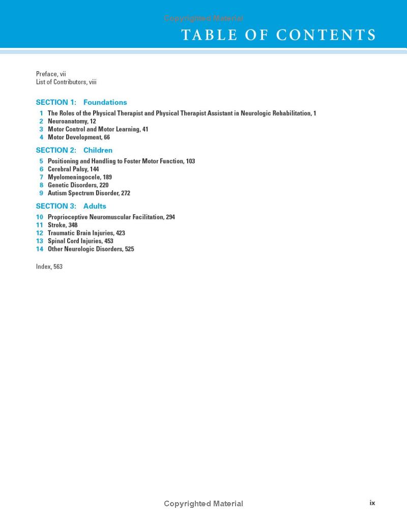 - Comprehensive content on the role of neurologic rehabilitation focuses on the treatment of adults and children with neuromuscular impairments and explores concepts in neuroanatomy, motor control and motor learning, and motor development