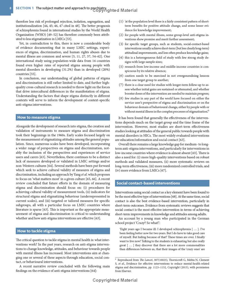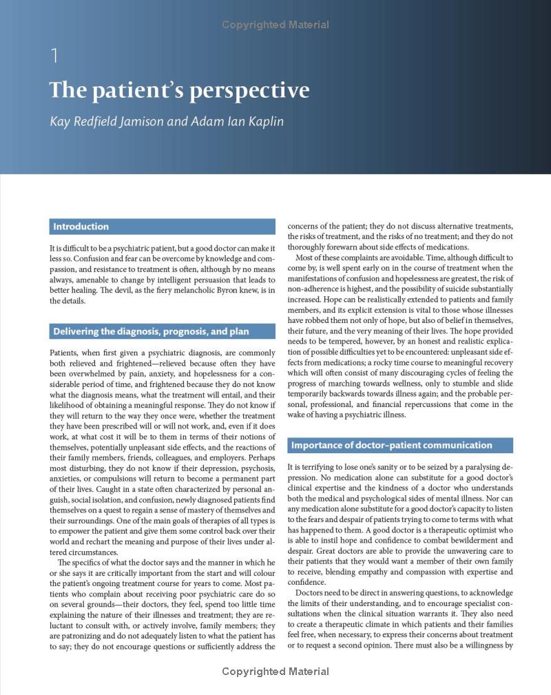 Throughout, accounts of clinical practice are linked to the underlying science, and to the evidence for the efficacy of treatments. Physical and psychological treatments, including psychodynamic approaches, are covered in depth. The history of psychiatry, ethics, public health aspects, and public attitudes to psychiatry and to patients are all given due attention.