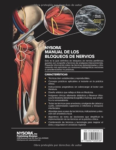 • Sumérjase en un mundo de precisión, eficacia y arte con el Manual NYSORA. Aunque usted sea un anestesiólogo experto o un residente ansioso por mejorar sus habilidades, este manual es una adición indispensable a su biblioteca profesional. Consiga su copia hoy mismo y revolucione su enfoque de la anestesia y analgesia regional.