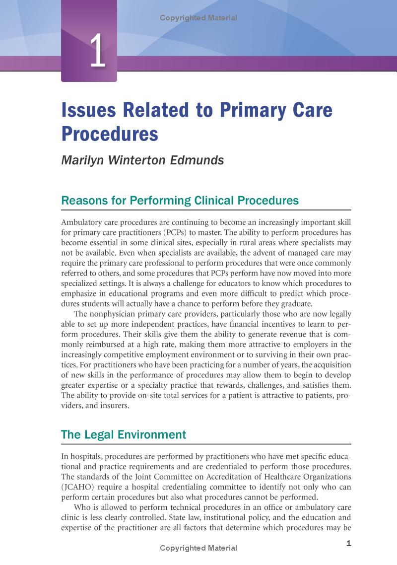 - An introductory chapter covers legal, educational, and reimbursement factors related to performing common office procedures.