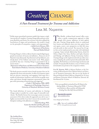 See also Creating Change: A Past-Focused Treatment for Trauma and Addiction, and the self-help guide Finding Your Best Self, Revised Edition: Recovery from Addiction, Trauma, or Both, an ideal client recommendation.