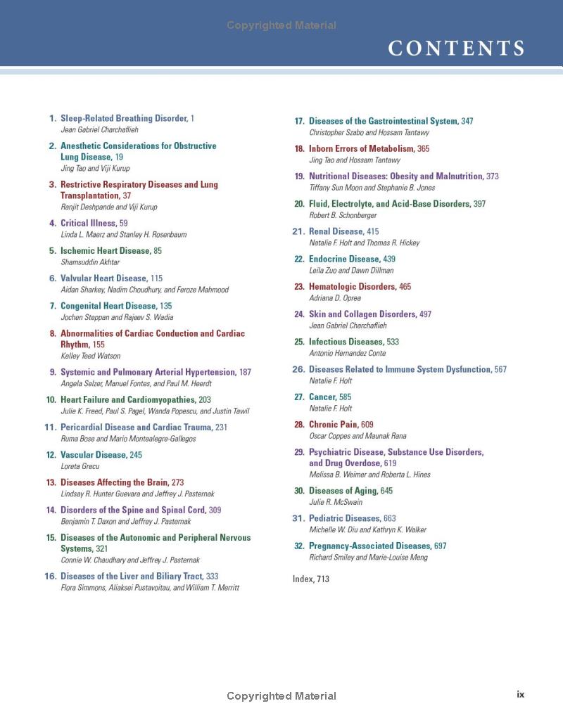 - Presents detailed discussions of common diseases, as well as highlights of more rare diseases and their unique features that could be of importance in the perioperative period.