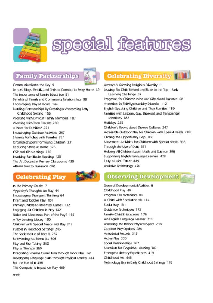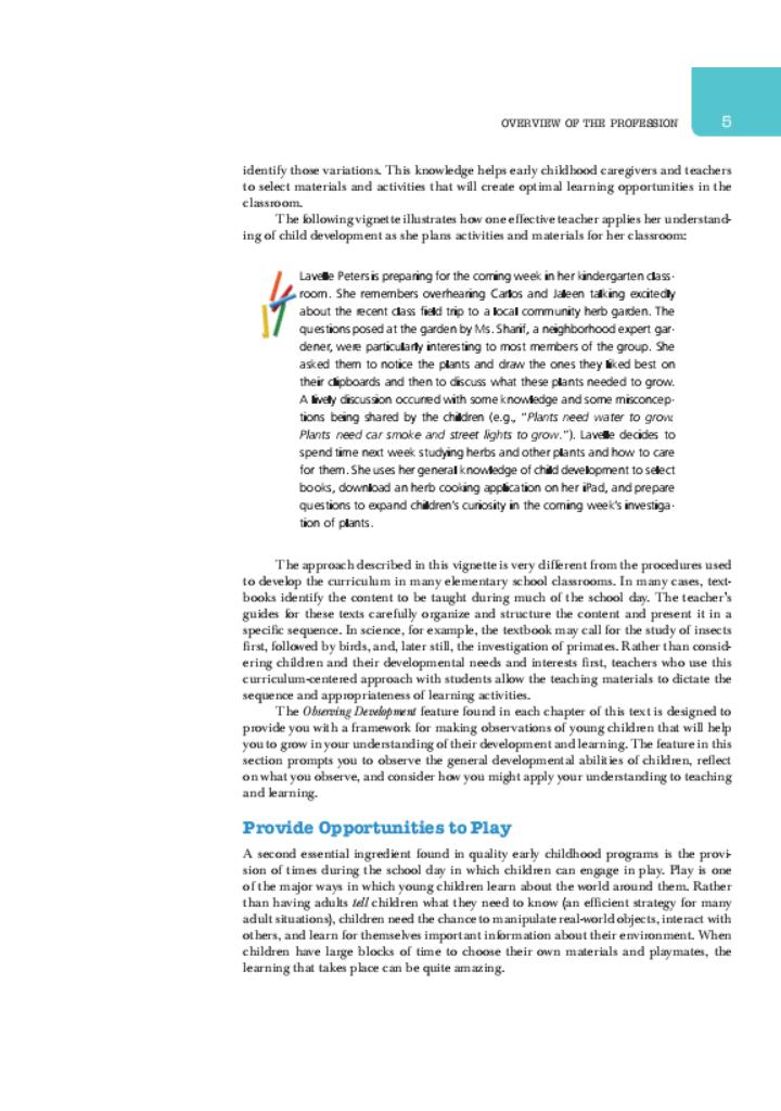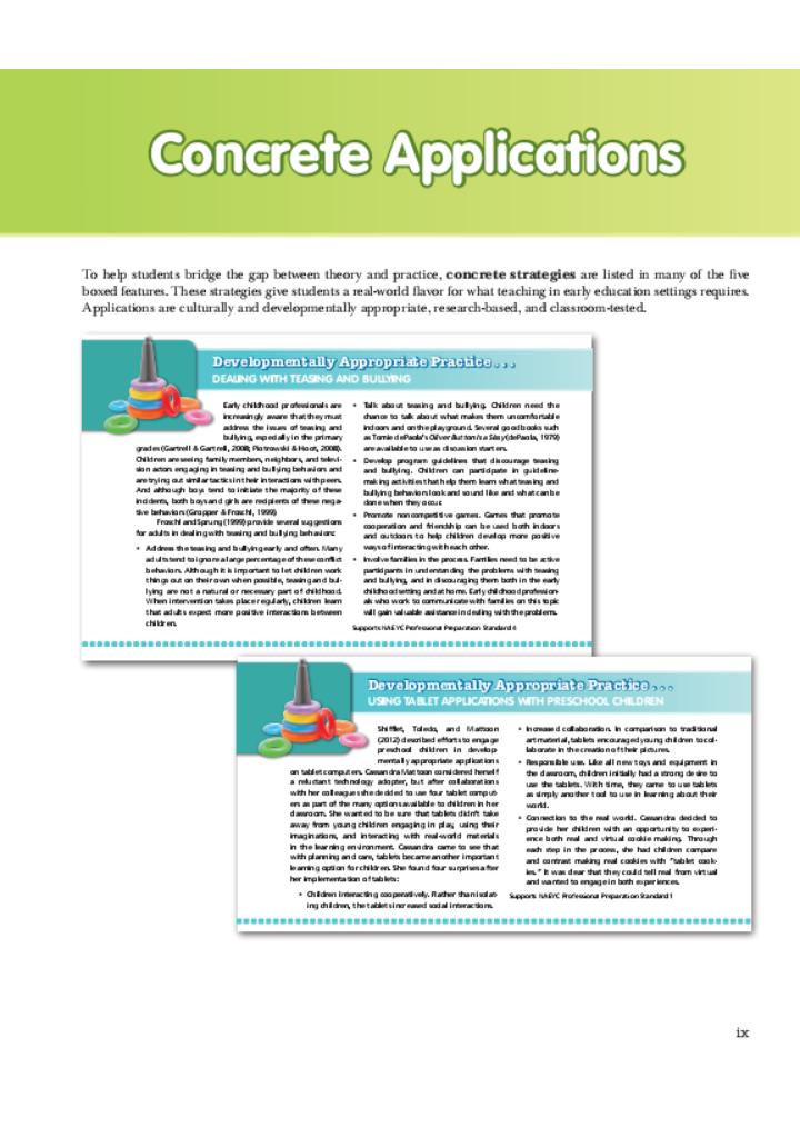 This comprehensive text gives pre-service early childhood educators a balanced, accessible introduction to early childhood education that also covers the content areas. It shows readers how to teach and care for children by identifying and focusing on five essential elements: understanding child development, play, guidance, working with families, and diversity. Each essential element is addressed in its own separate chapter and then explored at a deeper level in a featured section in ever chapter.