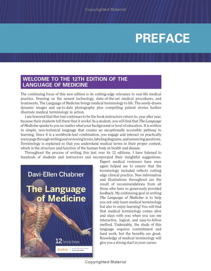 Easily and effectively master medical terminology with Davi-Ellen Chabner’s The Language of Medicine, 12th Edition! Using Chabner’s proven method of learning medical terms by studying them in the context of the human body, this highly-praised and best-selling text helps individuals of all educational backgrounds easily understand and remember important medical terminology by incorporating easy-to-follow explanations, logical and interesting examples, and countless reinforcement exercises. This new twelfth edition also features additional spotlight boxes on high-interest medical topics; updated medical scenario reports, laboratory tests, and clinical procedures; a new mini dictionary; additional in person stories, ADA-compliant resources, and more. No matter where your career path takes you, Chabner’s proven method for med term mastery will help keep you grounded.