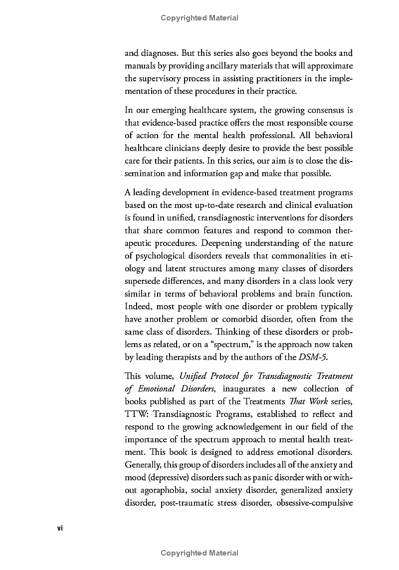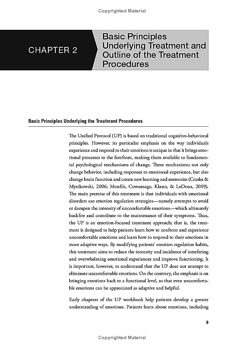 Unified Protocol for Transdiagnostic Treatment of Emotional Disorders provides an alternative to disorder-specific treatments of various emotional disorders, designed to be applicable to the wide range of anxiety and other disorders with strong emotional components. The Therapist Guide and accompanying client Workbook present an eight-module therapy program that puts substantial emphasis on emotion-focused approaches, helping clients confront and experience challenging emotions while teaching them how to regulate those emotions. Expanded considerably in this second edition, the volume provides guidance on using the Unified Protocol (UP) to address problems not only with anxiety, but also with depression, eating disorders, non-suicidal self-injury, substance use, and anger. Treatment procedures have been further elucidated and more guidance is provided to practitioners on how to present key treatment concepts. Chapters brand new to this updated edition introduce functional assessment and describe how to provide the UP in a group format, while patient materials have been revised, streamlined, and made more user-friendly.